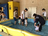 楽しかった水あそびもそろそろ終了。 汚れを落としてもらって着替えよう。
