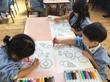 年長さんは、個人絵の具でフルーツの色塗り♪