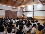 音楽朝礼に続いて、明日のワカバウォークでの演奏を控えた年長さんに、鼓笛演奏をホールで披露してもらいました。