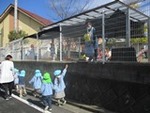 年少さんとキディさんは、一緒に幼稚園の周りをぐるっと一周お散歩しました。