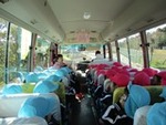 お天気に恵まれた卒業ハイキング! 元気いっぱいの子どもたちはバスに乗り込み、山に向けて出発しました。