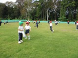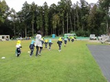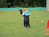 何人かのビブスを持っている子を追いかけ、タッチしたらビブスを渡します。 ビブスを手に出来るように頑張れ~!