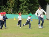 ボールを手で触ってはいけません。 足で蹴ってボールをGETしよう! ボールを追いかける姿は真剣。