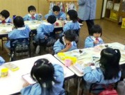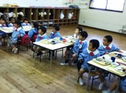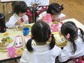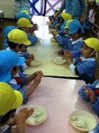 お弁当のうたをうたって、「いただきます」のご挨拶。 さあ、モリモリ食べよう ♪