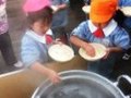 お別れ交換会では、お世話になった年長さんに、年中・少児がすいとんを作って、みんなで一緒に食べました。