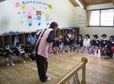 お帰りの時間が終わると、年長組のお兄さんとお姉さんが、新入園児のお友達を案内するために、年少組の部屋に来てくれました。