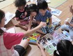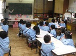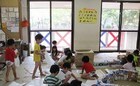 そして、今日のメインの活動、文字指導。 先生の方を向き真剣に文字と向き合う子どもたち。