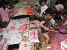 造形遊びWEEK 3日目 今日は、糊や絵の具をたくさん使いました。