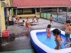 次は、用意しておいた傘をさして、スペシャルな雨降りを楽しむ子ども達。