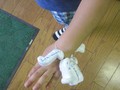 お家の人がお部屋に来たところで、手洗い・うがいスタート。 年長は、自分でうがい薬のボトルからコップにうがい薬を入れ、うがいも手洗いも自分で行います。