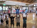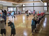 今日は体育講師の先生指導のもと、運動会にむけて練習をしました。 本当だったら外でやりたいところですが...さすがにこの暑さなのでホールで。