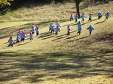 ラジオ体操のあとは順番にジョギング。 まずは年長・年中さんが走ります。