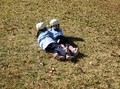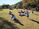 落ち葉が散らばった芝生の斜面を転がったり、かけっこしたり、葉っぱやどんぐりをひろったり、遊びは尽きません。