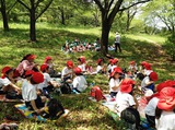 年少組が園外保育にいってきました。広い芝生が広がる公園。子ども達の元気がはじけていました。