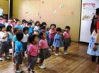 そして、朝礼・礼拝。 ピアノの音でスッ!っと立ち、フラフラすることなく、歌もしっかり歌え、さすが年長!という姿でした。