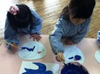 年中さんが、和紙で、染め絵に挑戦しました。