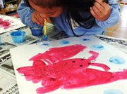 年中のあるクラス、絵の具で存分に遊びました。