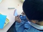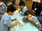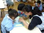 先生の英語での問いかけに真剣に耳を傾けています。![]()