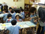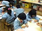 一人一人に先生がインタビュー、先生の真似をして、上手に英語でも答えられました。