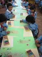 造形遊びWEEK 3日目 今日は、糊や絵の具をたくさん使いました。