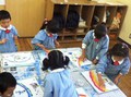 年長の子供達は、手馴れた手つきで、ダンボールを箱にしていきます。