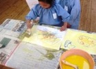 | 今日のお話会の特別ゲストは、ティム先生! Bigな身体とBigな声で「Hello~!!!] ちびっこ達ちょっとびっくり☆☆☆ でも、英語のパネルシアターで 一緒に歌ったり、踊ったり、 英語の絵本も読んでもらいすぐに仲良し。 ハートは国境を越えますね。 | |