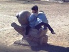 そして子ども達がおもちつきをする前にお手伝いのお父さん達が練習。