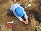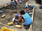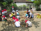 昨日の雨のため、年中とめだか組のサツマイモ掘りは今日になりました。