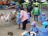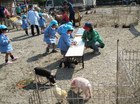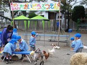 今年も、モルモットやうさぎ、子ヤギ、かめ、子ひつじ、こぶた、ミニチュアホース、はりねずみ、ふくろう、ヘラクレスカブトムシ、グリーンイグアナ、ペレット、インコなどたくさんの動物たちが園にやってきて、園庭は動物園に変身。ちいさなひよこやパンダねずみをそっと大事そうに手の平にのせたり、ヘビを首にまいて、キャーキャーと声をあげたり、乗馬体験では、ニコニコで馬の背で揺られていたり、子ども達は、様々な表情を見せていました。毎年、来ている馬のジャックとポニーのミルキーと年長さんは、イチョウの木の下で、さよならをしました。