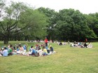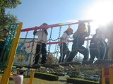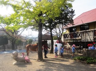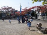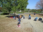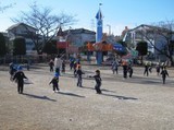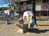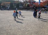 お兄さんお姉さん達がさつまいも掘りに出かけた間、年少組は、近くの公園に歩いて遊びに行きました。体育の先生と一緒に公園の広場で楽しく体操したり、公園の遊具で色々と遊んでみんなニコニコのお出かけになりました。