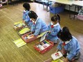 年長にもなると、手つきもスムーズ、自分達も輪になって、黙々と手を動かしていました。