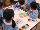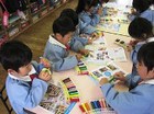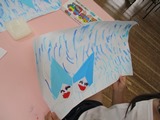 絵の具は自分のお道具箱に入っているけど、みんなと一緒の時にだけ使えるちょっぴり特別なもの! 年中の時にも使いましたが、再度使い方の確認でぬりえのようにぬって仕上げました。