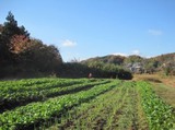 収穫の後は、泥団子を作ったり、虫を探したり、畑で遊ばせてもらいました。畑の土は、フカフカして、さらに長靴をはいているので、歩いたり、走ったりするのも園庭とは違った感触でおもしろかったです。晩秋の里山の景色に囲まれて、頭上にひろがる空は大きく広々としていて、伸びやかな気持ちになりました。