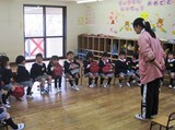 年長さんは音楽指導の先生とたいこのバチ打ちと行進の練習をしました。