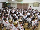 ホールには幼稚園のお友だちみんなが集まって修業式が行われました。