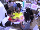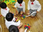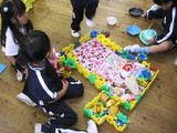 音楽朝礼後、制作をした一緒に年長さん。