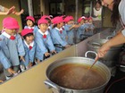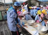 さあ、子ども達の準備も出来ました。今日は手拭いで頭にねじり鉢巻きをして...やる気マンマン!