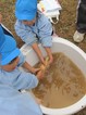手袋のかわりの靴下。稲刈りの後は、虫さがし。