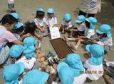 木陰の下で、大きな、大きなスイカをクラスのみんなで力を合わせて割りました。今年のスイカは手ごわくて、先生たちのお助けマンも大活躍。割れたスイカの赤い実の鮮やかさにびっくりしました。真っ赤なスイカおいしかったね。