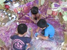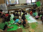 今年は、室内だけにとどまらず、園庭にでていくシーンも多かったです。4日目のとても暑い日に夏の日差しのもとでの絵の具遊びが印象的でした。