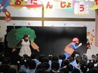 「あなたのおなまえは?」♪の歌で始まった今年のコンサート。歌詞の中に誰かの名前が出てくる歌を色々と歌って頂きました。知っている曲を一緒に歌う子供たちは嬉しさいっぱい。そして、ホールに響く眞理さんの伸びやかで情感豊かな美しい歌声にじっと聴きいっていました。先生たちも眞理さんと一緒に歌ったり、ペープサートで共演させて頂き、密度の濃い、特別な時間を皆で過ごしました。