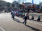 気持ちの良い秋晴れのもと、園庭で全学年一緒に運動会ごっこを楽しみました。まずは、年少のおゆうぎ。3学年縦割りで3つの円をつくり、踊りました。年長さんも年中さんもみんなニコニコ嬉しそうでした。続いて、年中のバルーンにもみんなで挑戦。バルーンに初めて触る年少さんはドキドキワクワク、昨年やった年長さんはちょっぴり余裕、もちろん年中さんは、自信満々。波のようにバタバタとふったり、膨らませてみたり、青空に赤、青、黄のバルーンが鮮やかでした。年長の綱引きは、男女対抗戦で再現。一直線に全学年が並び、オーエス、オーエス、迫力満点でした。最後の年中、年長合同リレーでは、年少さんは可愛い応援団になって、白熱しました。