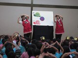 「どんな色がすき?」♪の歌で始まった今年のコンサート。赤や青、白に黄色、緑に黒などなど、各色にちなんだ歌を数多く歌って下さいました。知っている歌を一緒に歌った時には、眞理さんがやさしく歌うと子ども達も優しく、元気に歌うと子ども達も元気よく、眞理さんに呼応して楽しそうに歌う姿が印象的でした。子ども達になじみのある歌だけでなく、最近は、あまり歌われなくなったけれども、素敵な童謡、唱歌も歌って下さり、眞理さんの伸びやかで情感豊かな美しい歌声に、子ども達も感じるものがあったようです。手遊びをしたり、先生たちも参加して盛り上げる歌もあったり、盛りだくさんの内容で、心躍るコンサートでした。
