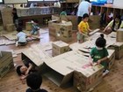 おもいきっり遊んだら今度は、お片付けです。自分たちが作ったものを処分するのは、さびしいけれど、いざ始まると段ボールつぶしたり、はがしたり、運んだりすることが、これはこれでとってもおもしろく、あれよあれよというまにきれいになっていきました。久しぶりにでてきた床を、最後は雑巾がけもしました。「あーあ、終わっちゃった」という気持ちと、もとに戻って少しほっとしたようなその気持ちが廊下に漂っているようでした。