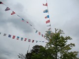 クラス毎に胴体に絵を描いて作ったこいのぼり達。今朝からお庭で気持ちよさそうに泳いでいます。