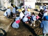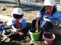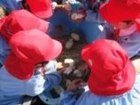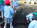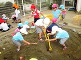 めだか組のお友達が砂場にいってみると、砂場に大きな穴ができてました。