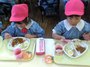 月に一度のお弁当を楽しみにしているめだか・いちご組さんはテラスで、ピクニックシートを預かっている年長さんもお外で食べました!