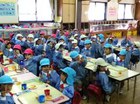 月に一度の避難訓練でした。 今回は不審者対策の練習。
