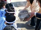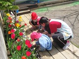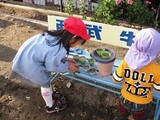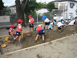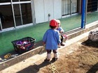 園庭でも、プランターを使って苗を植えました。お庭でも稲の成長を見守っていきます。