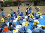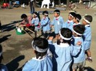さあ、子ども達の準備も出来ました。今日は手拭いで頭にねじり鉢巻きをして...やる気マンマン!
